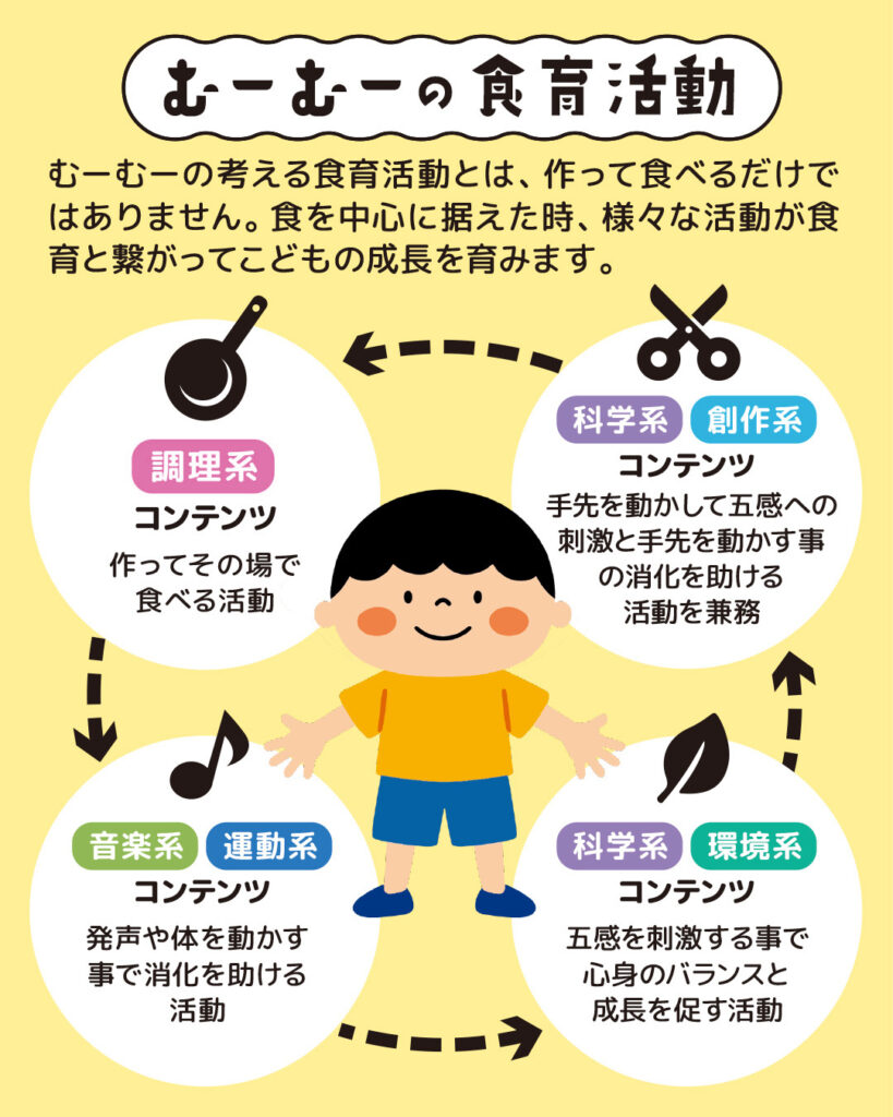 だからこそ、むーむーでは食を中心に据えて、関連する活動も含めた大きな意味として食育を考えています。